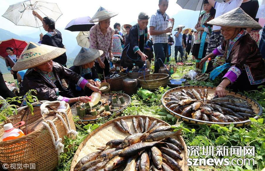 2018年11月19日,侗族同胞在參加貴州省從江縣慶云鎮(zhèn)“凍魚節(jié)”祭薩儀式。 據(jù)了解,“凍魚節(jié)”是當(dāng)?shù)亍笆稀倍弊逋赜械募漓雮鹘y(tǒng)節(jié)日,定在每年農(nóng)歷的10月12日,是人們紀(jì)念祖先遷徙而舉辦的規(guī)模盛大的節(jié)日,至今已有500多年的歷史。節(jié)日期間,主人邀請(qǐng)親友聚餐、參與慶祝活動(dòng),共享豐收喜悅。