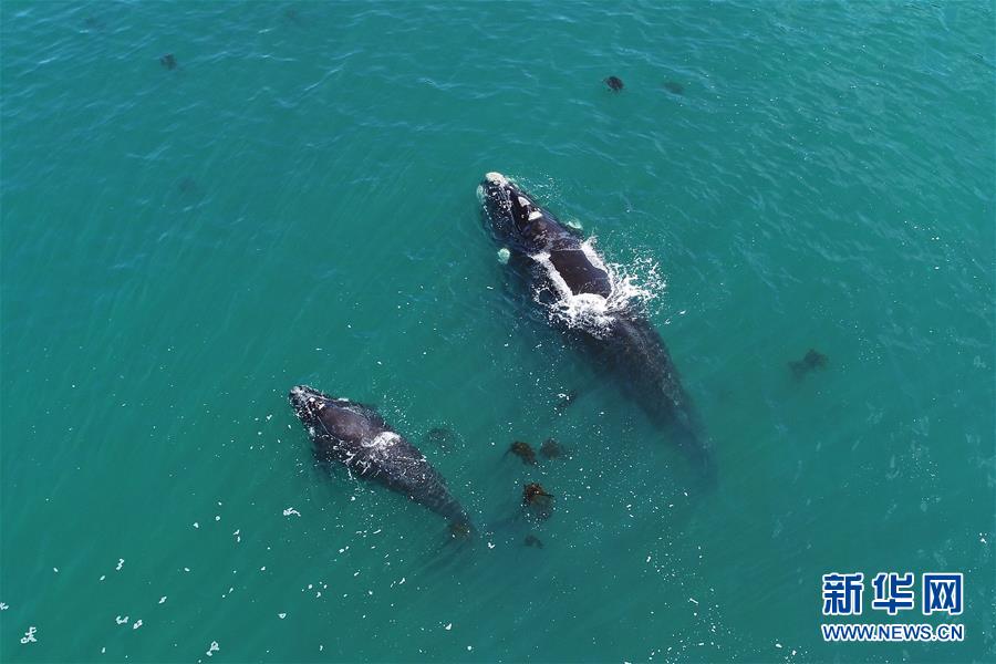 9月30日,在南非赫曼紐斯小鎮(zhèn)附近海面上,南露脊鯨在海岸邊暢游。9月29日,位于開普敦以東約115公里的赫曼紐斯小鎮(zhèn)迎來2018年的鯨魚節(jié),來自世界各地的游客可乘船出海觀鯨,也可在岸邊等待鯨魚的到來。新華社記者陳誠(chéng)攝