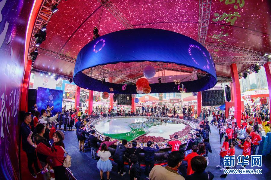 10月19日在重慶拍攝的火鍋美食文化節(jié)現(xiàn)場(chǎng)。 當(dāng)日,第十屆中國(guó)(重慶)火鍋美食文化節(jié)在重慶市江北區(qū)正式開幕。本屆火鍋美食文化節(jié)為期4天,以“麻辣happy城市節(jié)日”為主題,50000平方米的展區(qū)吸引了70余個(gè)火鍋品牌、300余家火鍋供應(yīng)鏈企業(yè)參展,萬人同燙火鍋的盛況在“火鍋之都”重慶再現(xiàn)。 新華社記者 劉潺 攝