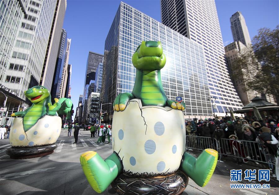 11月22日,在美國(guó)紐約感恩節(jié)大游行上,“恐龍寶寶”造型氣球車行進(jìn)在曼哈頓街頭。