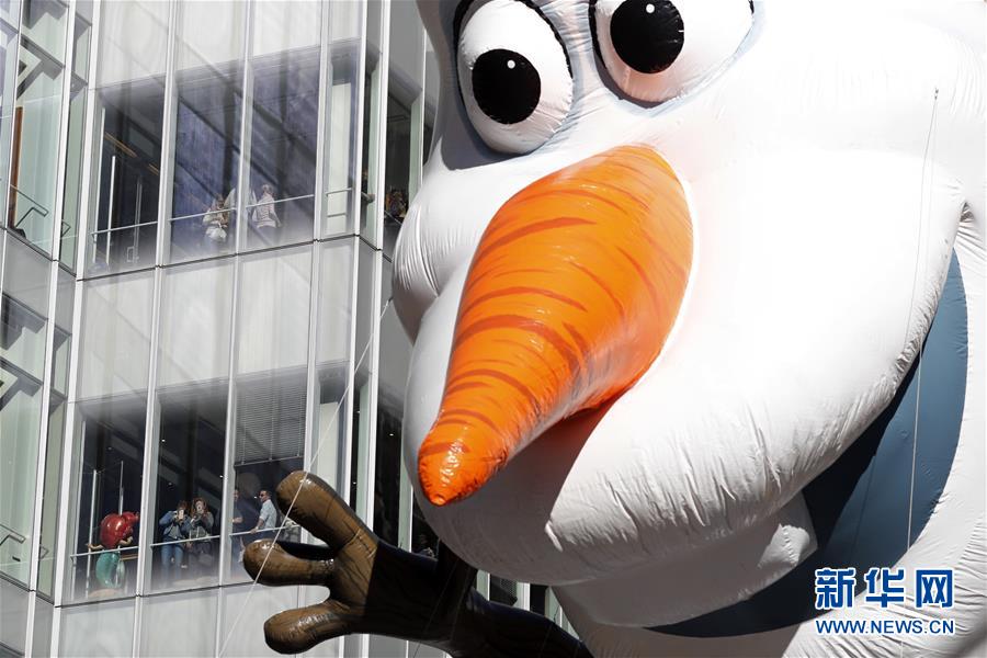 當(dāng)日,第92屆梅西感恩節(jié)大游行在紐約舉行,各式各樣的玩偶?xì)馇颉⒒ㄜ囮?duì)伍在曼哈頓的摩天大樓間穿行,吸引數(shù)百萬民眾前來觀看。梅西感恩節(jié)大游行始于1924年,是全美規(guī)模最大的感恩節(jié)游行。