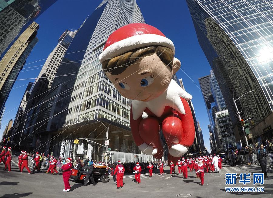 11月22日,在美國紐約感恩節大游行上,“書架精靈”造型氣球行進在曼哈頓街頭。