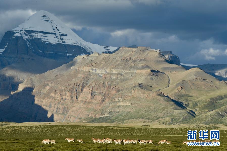 在西藏阿里地區岡仁波齊峰腳下的國家一級保護動物藏野驢(9月11日攝)。 阿里地處西藏西部,平均海拔4500米以上,面積30多萬平方公里,羌塘國家級自然保護區幾乎涵蓋整個阿里地區,是眾多野生動物生活的樂園。 新華社記者 普布扎西 攝
