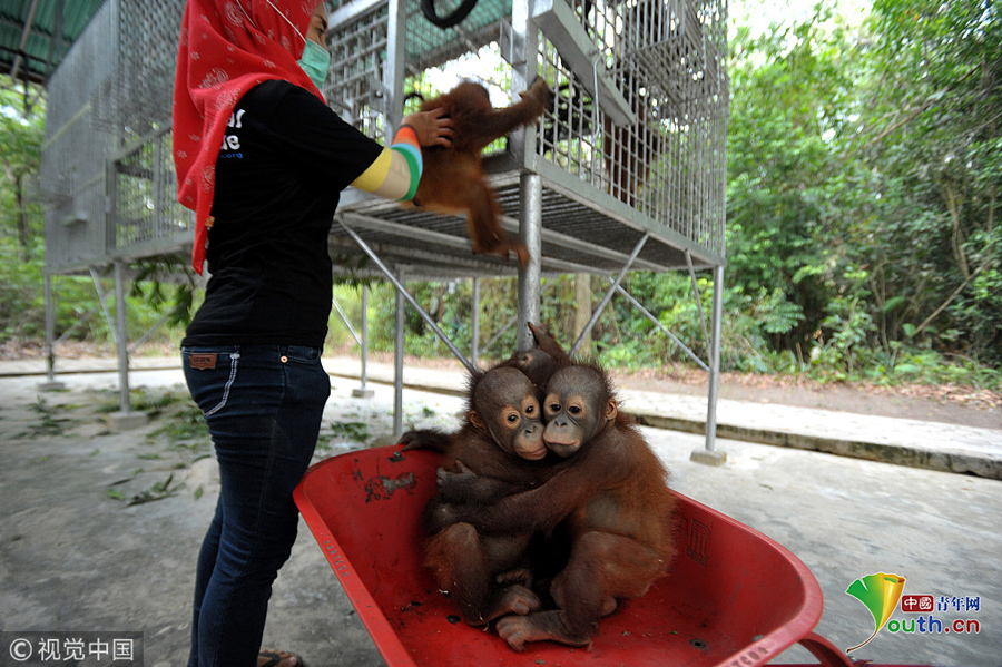 猩猩寶寶將在學(xué)校里學(xué)會爬、玩和保護(hù)自己,最后它們會被放歸自然棲息地。圖片作者:Newscom