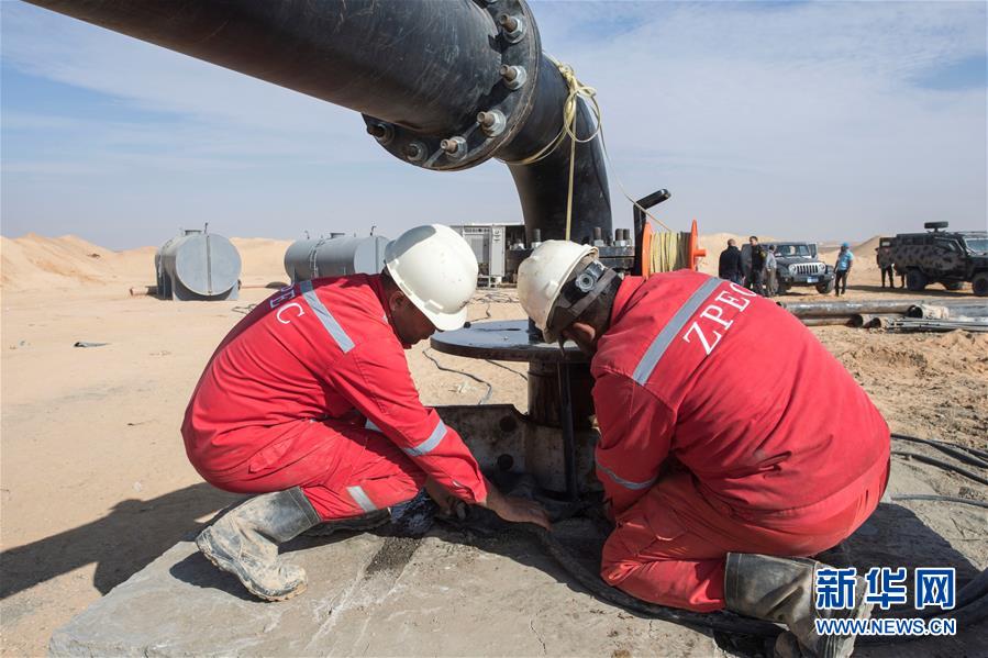 11月21日,在埃及明亞省,中國中曼石油公司的工人在鉆井現場作業。 2017年,中國中曼石油公司與阿聯酋海灣集團簽訂合同,為該集團在埃及沙漠中的大型農業項目鉆探300口水井。根據合同,中曼石油將先期完成30口井的試鉆探,剩余水井將以每月7口的速度交付。目前有超過200名工人在鉆井現場作業,大部分是埃及本地人。 新華社記者李碧念攝