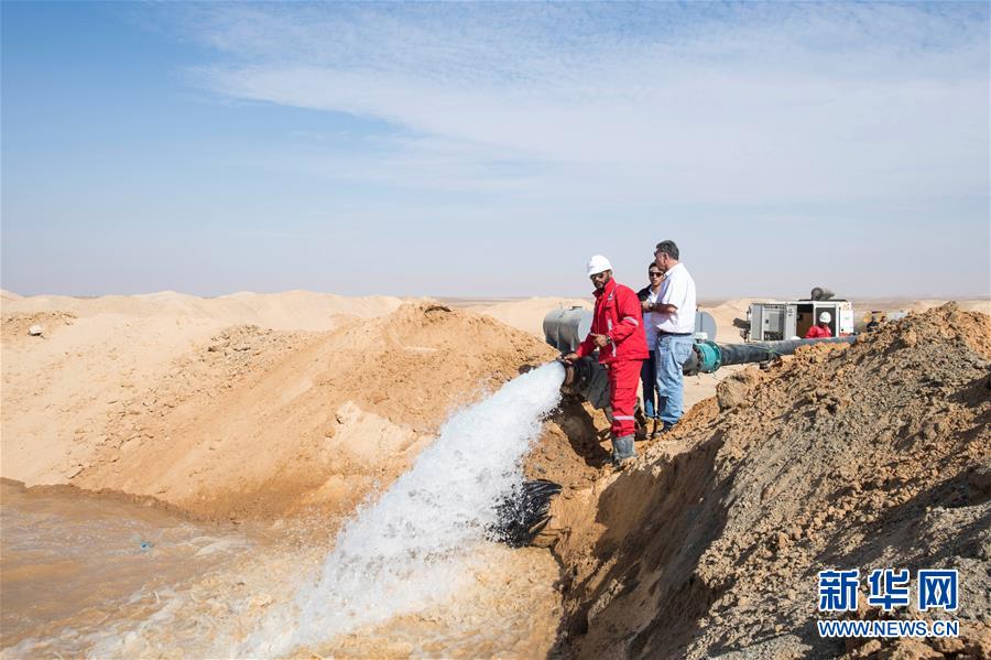 11月21日,在埃及明亞省,地下水從水管里噴涌而出。 2017年,中國中曼石油公司與阿聯酋海灣集團簽訂合同,為該集團在埃及沙漠中的大型農業項目鉆探300口水井。根據合同,中曼石油將先期完成30口井的試鉆探,剩余水井將以每月7口的速度交付。目前有超過200名工人在鉆井現場作業,大部分是埃及本地人。 新華社記者李碧念攝