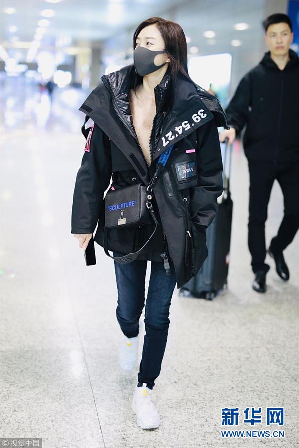 秦嵐潮味棉服亮相機(jī)場 口罩遮面露甜笑
