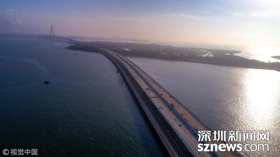 深圳新聞網訊  2018年12月5日,海口,高空航拍橫跨海口北港島的鋪前大橋。 據了解,鋪前大橋是目前國內抗震設防烈度最高、設計基本風速最大,且跨越地震帶活動斷層的跨海大橋,是國內首座跨地質斷裂帶的大型橋梁。總投資約30.1億元,該將在今年年底建成通車,將加快海南自貿港建設而助力。