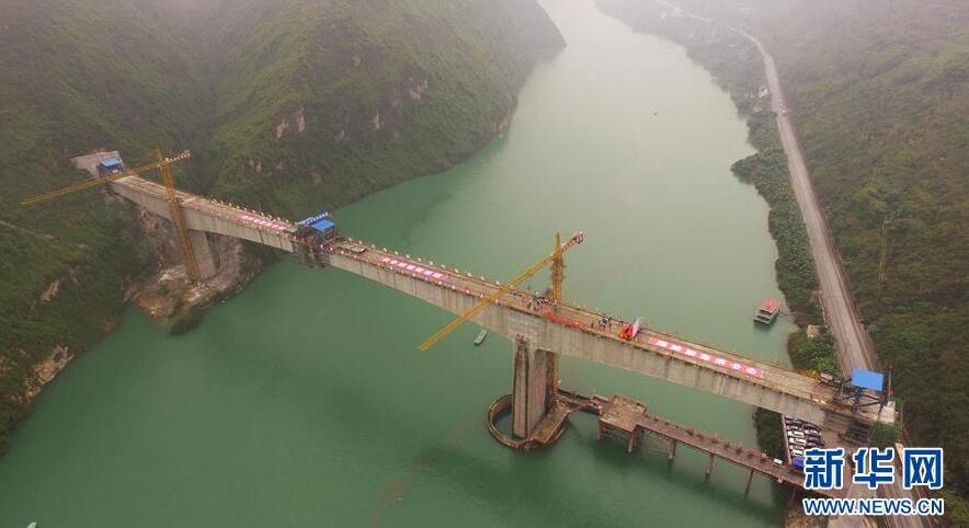 2018年5月30日,云南昭通,鸚哥大橋完成最后一段35米引橋現澆箱梁作業,標志著“鸚哥溜索改橋”主體工程完工,進入最后階段的橋面鋪裝和防護欄施工,預計6月底建成通車。