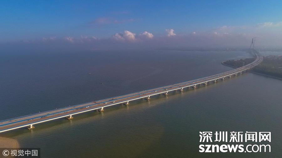 深圳新聞網訊  2018年12月5日,海口,高空航拍橫跨海口北港島的鋪前大橋。 據了解,鋪前大橋是目前國內抗震設防烈度最高、設計基本風速最大,且跨越地震帶活動斷層的跨海大橋,是國內首座跨地質斷裂帶的大型橋梁。總投資約30.1億元,該將在今年年底建成通車,將加快海南自貿港建設而助力。