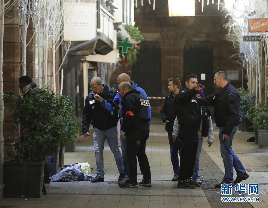 12月11日,警察在法國斯特拉斯堡市中心的槍擊事件現(xiàn)場附近調(diào)查。 新華社記者葉平凡攝