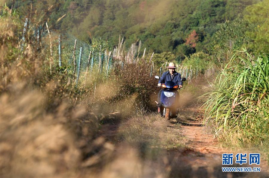 舒港發騎著電動車去查看自家種植的西洋參(10月27日攝)。