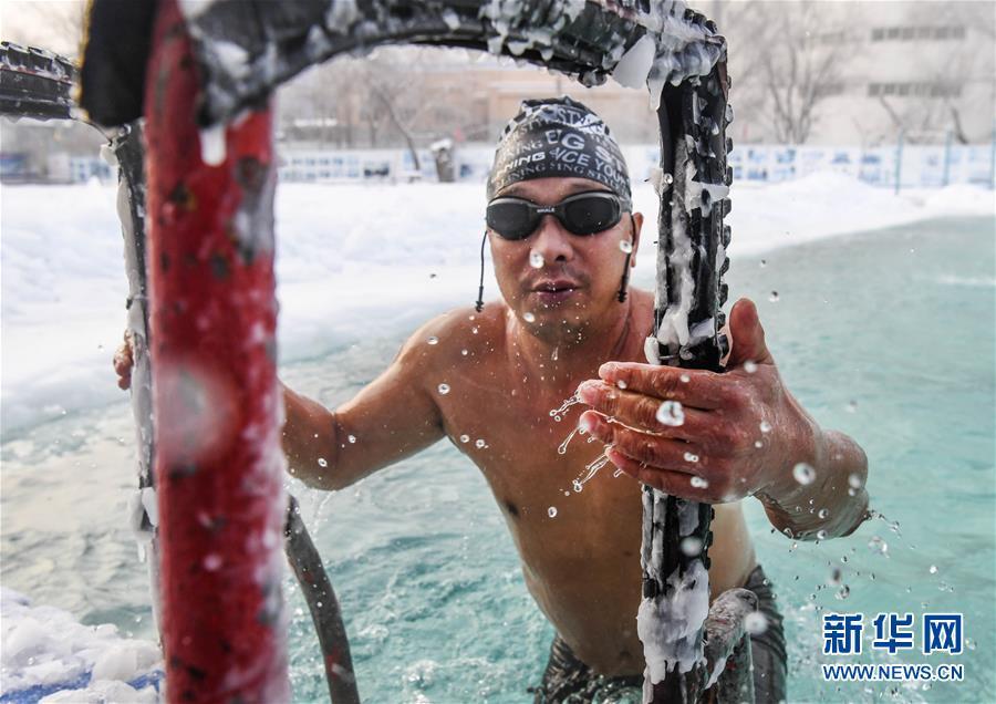 當(dāng)日,新疆烏魯木齊戶外氣溫接近零下20攝氏度,許多冬泳愛好者不懼嚴(yán)寒,來到烏魯木齊紅山游泳中心戶外泳池進行冬泳運動,鍛煉身體,磨練意志。