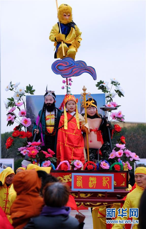 2019年1月1日在展演活動上拍攝的“抬閣”表演。2019年元旦,浙江省桐鄉市濮院鎮舉辦新年“非遺文化藝術節”活動,濮院鎮下屬多個鄉村的傳統美食制作、手工藝品、非遺文化表演等鄉村特色非遺項目在濮院鎮中心廣場進行集中展示展演。新華社記者 徐昱 攝