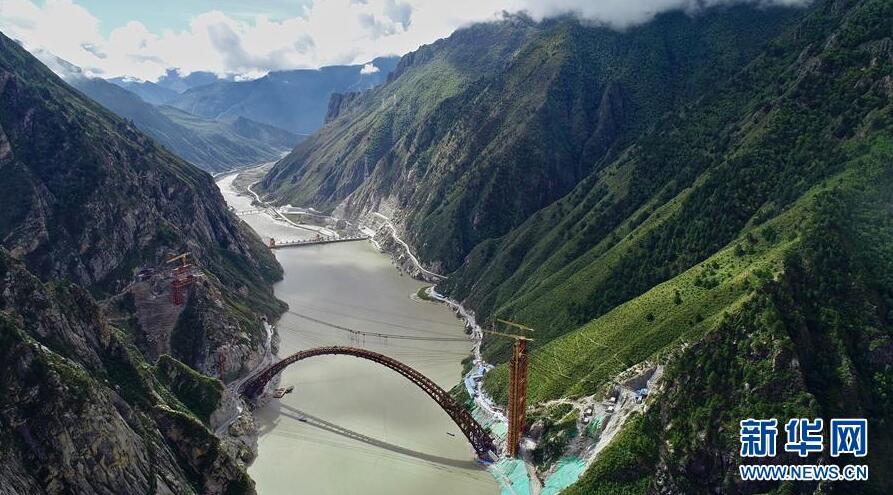 9月28日無人機拍攝的川藏鐵路拉林段重點標志性工程藏木特大橋。當日,隨著最后一節鋼管拱的對位和鎖定完畢,川藏鐵路拉林段藏木特大橋成功合龍,標志著大橋主體結構施工取得了關鍵性勝利。藏木特大橋由中國中鐵廣州局集團承建,拱高112米,橋橫跨雅魯藏布江峽谷,水深66米。新華社記者普布扎西攝