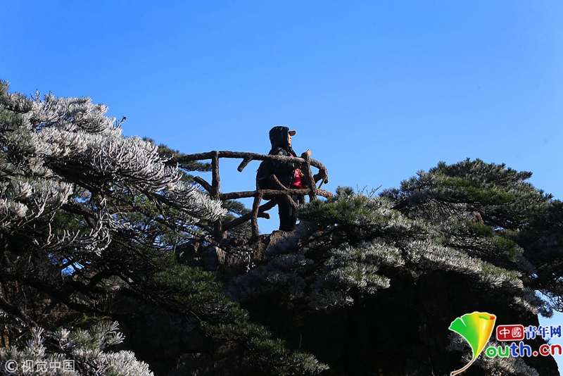 安徽黃山,受強冷空氣影響,氣溫突降,出現了四月陽春罕見的霧凇奇觀。
