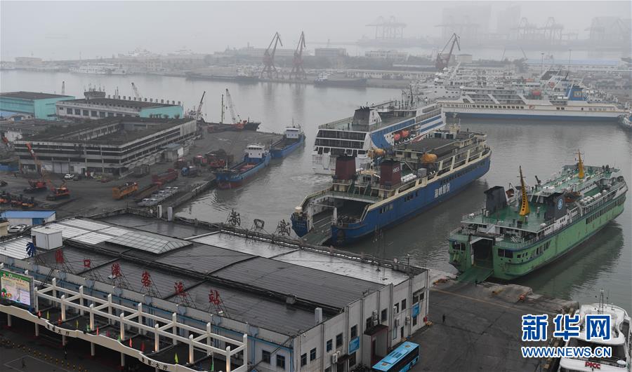 1月13日拍攝的停靠在海口秀英港的客滾船。