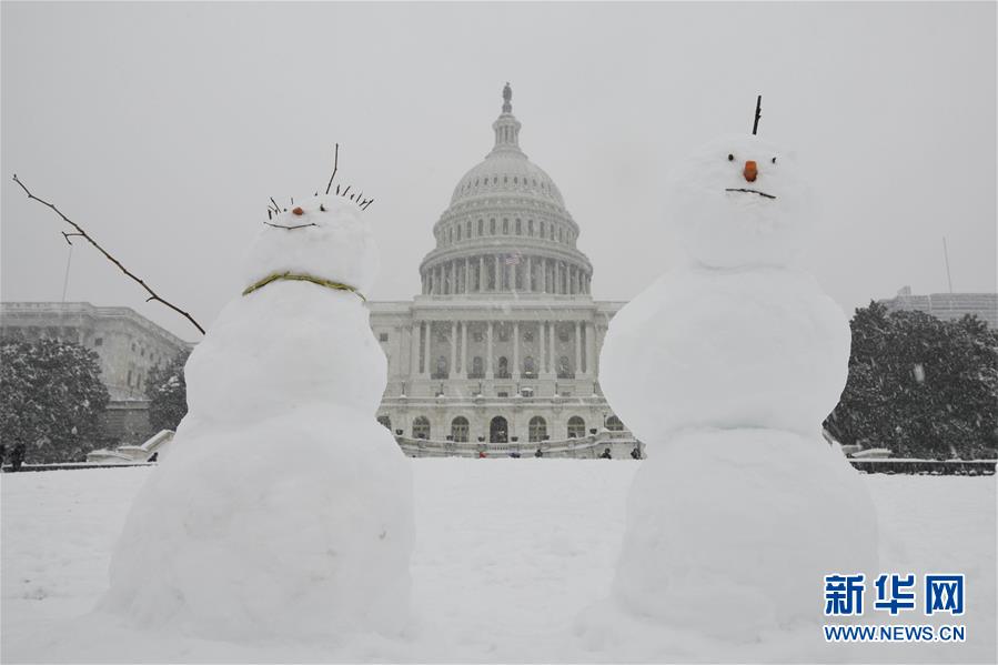 這是1月13日在美國首都華盛頓拍攝的雪中的國會山。 近日,美國首都華盛頓及其周邊地區普降暴雪。降雪導致部分航班晚點或取消,道路交通事故增多。 新華社記者 劉杰 攝