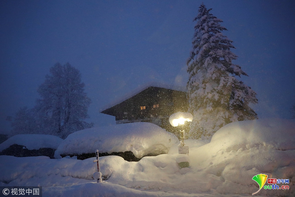 奧地利暴風雪持續 公交車站被積雪掩埋