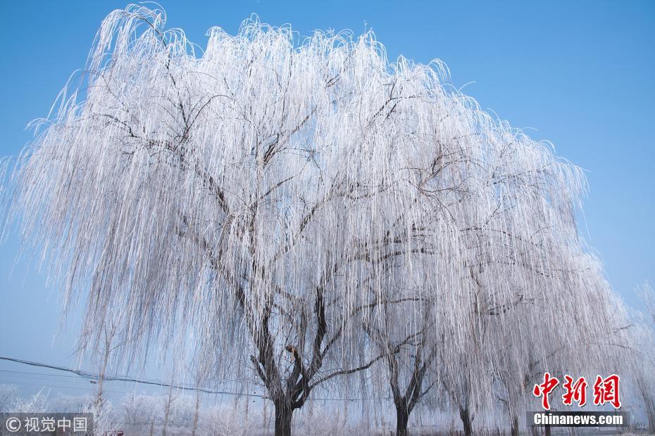 河北定州現霧凇景觀 吸引路人駐足拍照留念