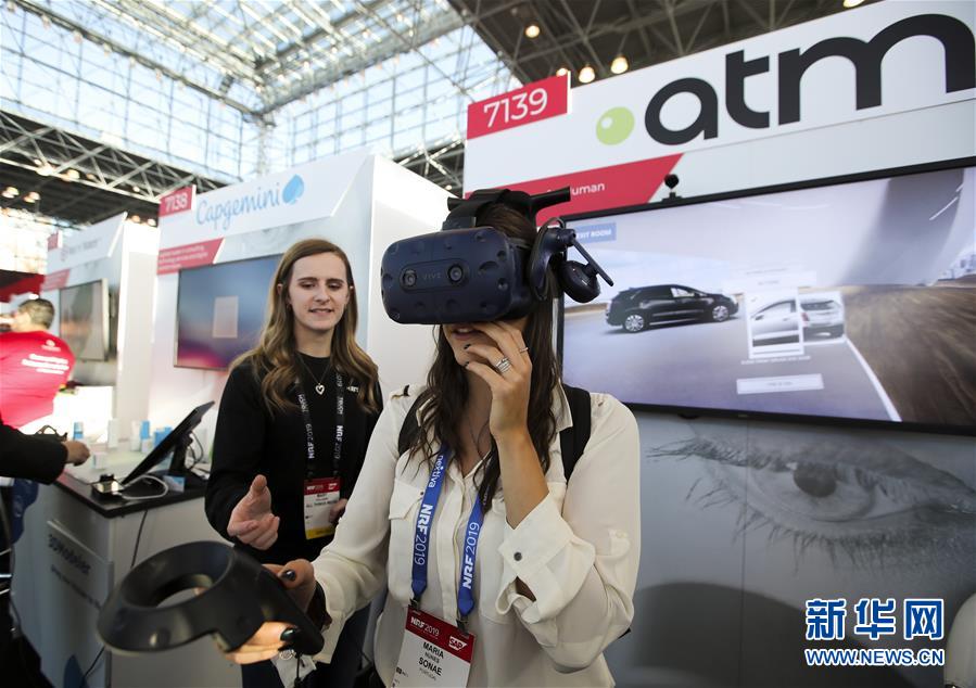 1月14日,在美國紐約舉行的全國零售商聯合會年度大會的“創新實驗室”展廳,參觀者嘗試一款用虛擬現實技術實現遠程選車的應用。 美國全國零售商聯合會年度大會于1月13日至15日在紐約舉行,許多來自世界各地的展商帶來使用新技術開發出的軟硬件產品,向觀眾展示未來零售業的新愿景。 新華社記者 王迎 攝