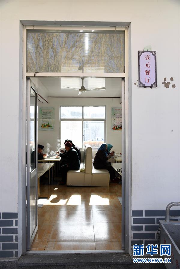 1月15日,村里的老人在“一元餐廳”內吃午飯。新華社記者王凱攝