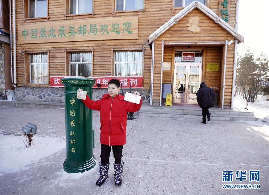 1月24日,在黑龍江省漠河市北極村郵政局,游客在挑選明信片。該郵政局是我國最北的郵政局。新華社記者王毓國攝