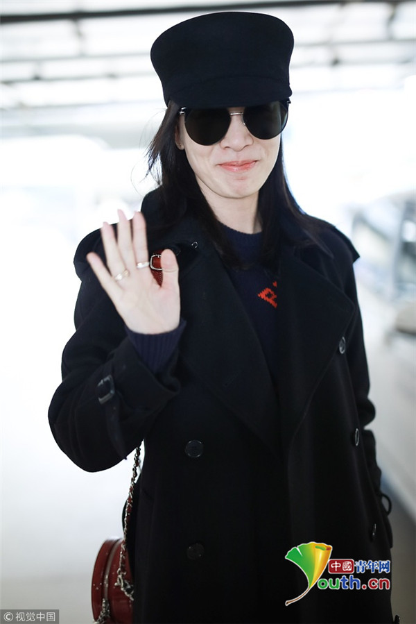 2019年2月28日,上海,佘詩曼現身機場。她頭戴禮帽,身穿黑色大衣走路帶風氣場強,單手托腮甜笑瞬間暖人心。