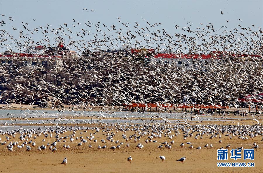 4月4日,一群候鳥在秦皇島市沿海濕地飛翔、休憩。近日,大批候鳥飛抵河北省秦皇島市沿海濕地,出現“萬鳥臨?!逼嬗^。秦皇島沿海濕地鳥類食物豐富,每年春、秋兩季,大批候鳥遷徙經過這里。新華社記者 楊世堯 攝