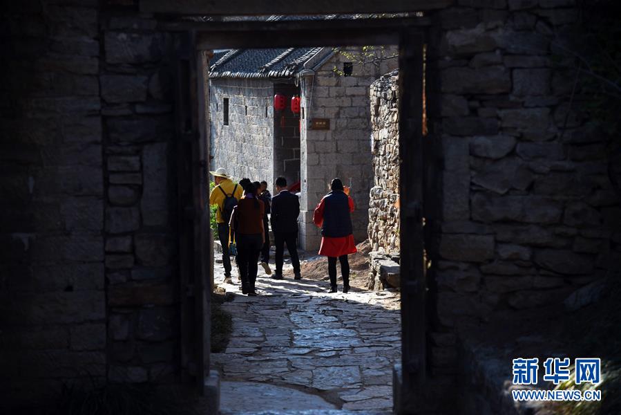 游客在山東省鄒城市石墻鎮上九山景區內游覽(3月31日攝)。新華社記者王凱攝