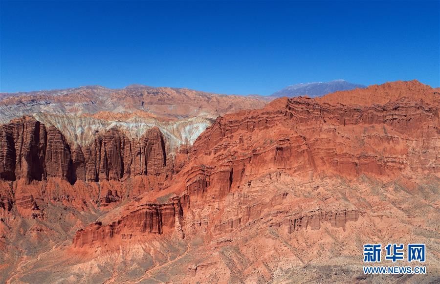 這是位于貴德縣尕讓鄉松巴村附近的丹霞地貌(4月16日無人機拍攝)。地處黃河上游河段的青海省海南藏族自治州貴德縣是黃土高原向青藏高原的過渡地帶,黃河水流經于此,大河兩岸壯美雄渾,碧水丹山相映成畫,有著“天下黃河貴德清”的美譽。新華社記者 張宏祥 攝