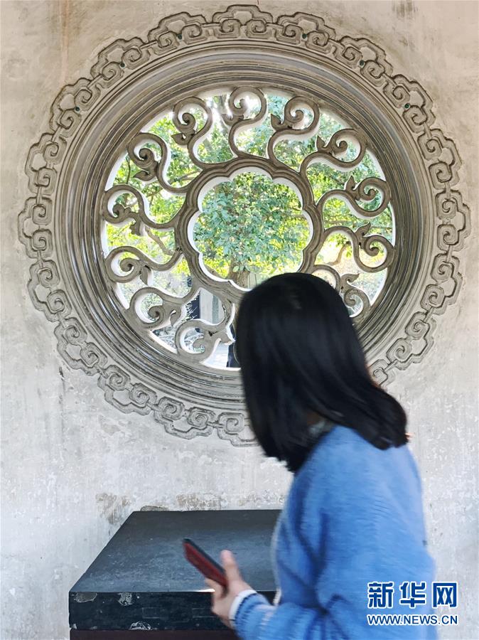 2019年4月1日,游客在中國蘇州耦園游覽。2000年,耦園和滄浪亭、藝圃、獅子林、退思園作為蘇州古典園林的擴展項目被列入聯(lián)合國教科文組織世界文化遺產(chǎn)名單。 新華社記者杜涓涓攝