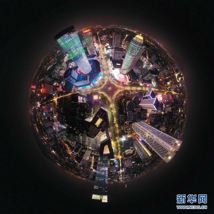 這是4月17日無人機拍攝的南京新街口夜景全景圖。 新華社記者 李博 攝