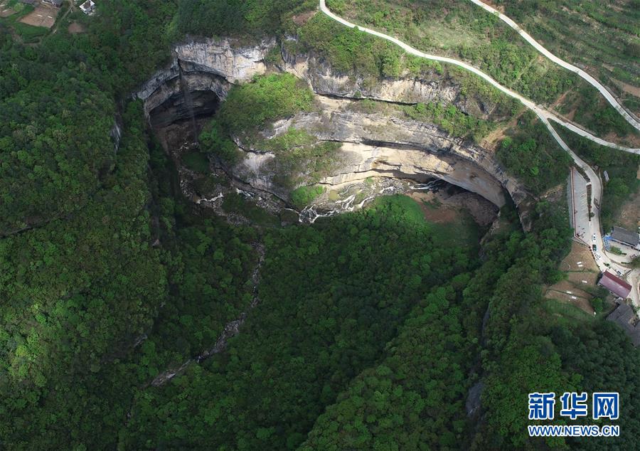 這是4月22日在陜西省漢中市寧強縣火石子村用無人機拍攝的地洞河天坑內的一處瀑布。位于陜西省漢中市寧強縣的地洞河天坑,是禪家?guī)r天坑群中規(guī)模最大的一處天坑,坑內分布有石鐘乳、石筍,具有極高的地質研究價值。 新華社記者 張博文 攝