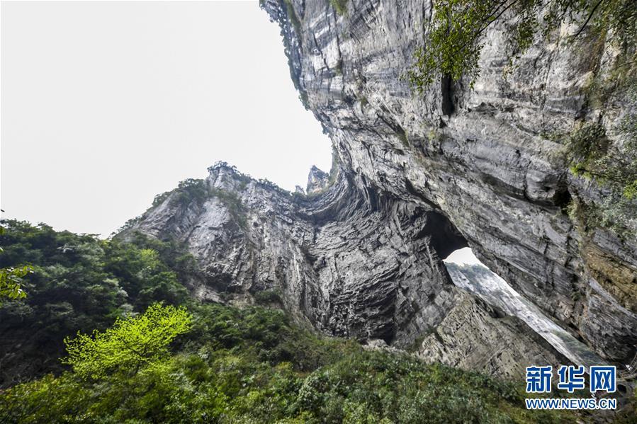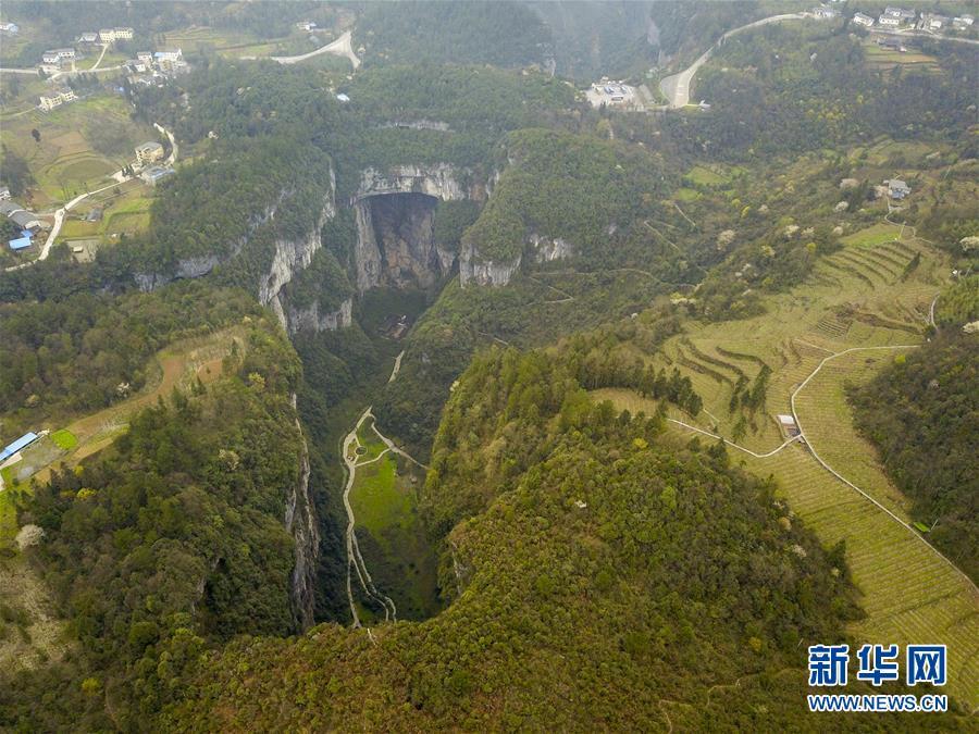 這是在天生三橋景區(qū)拍攝的神鷹天坑景觀(3月27日攝)。 隨著天氣轉暖,重慶武隆天生三橋景區(qū)風景如畫,氣勢磅礴的天生石橋和綠意盎然的山林相映成趣,吸引眾多游客前來踏春賞景。 新華社記者劉潺攝