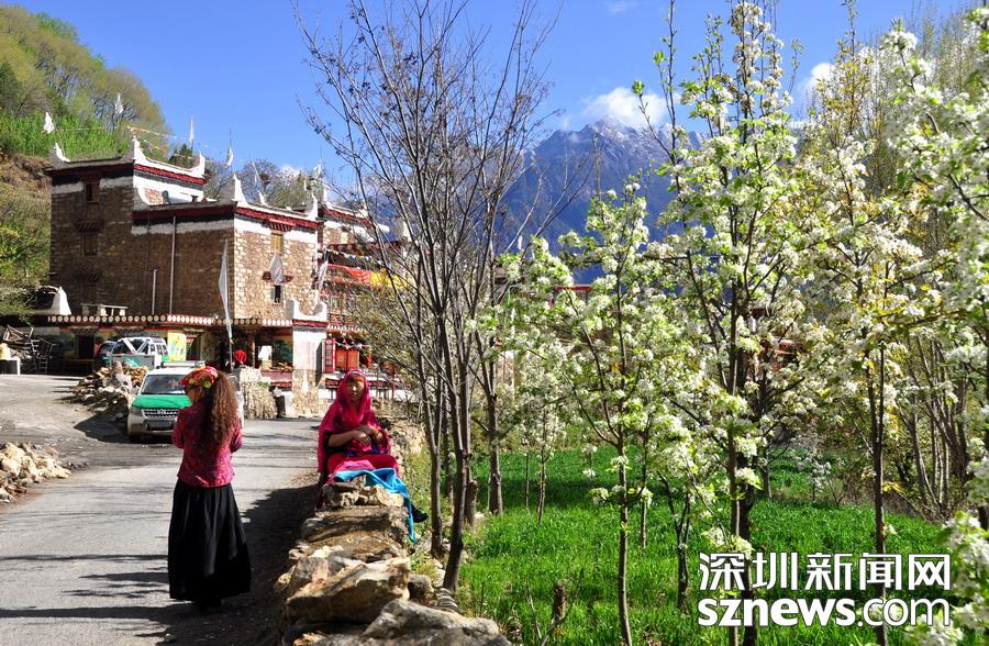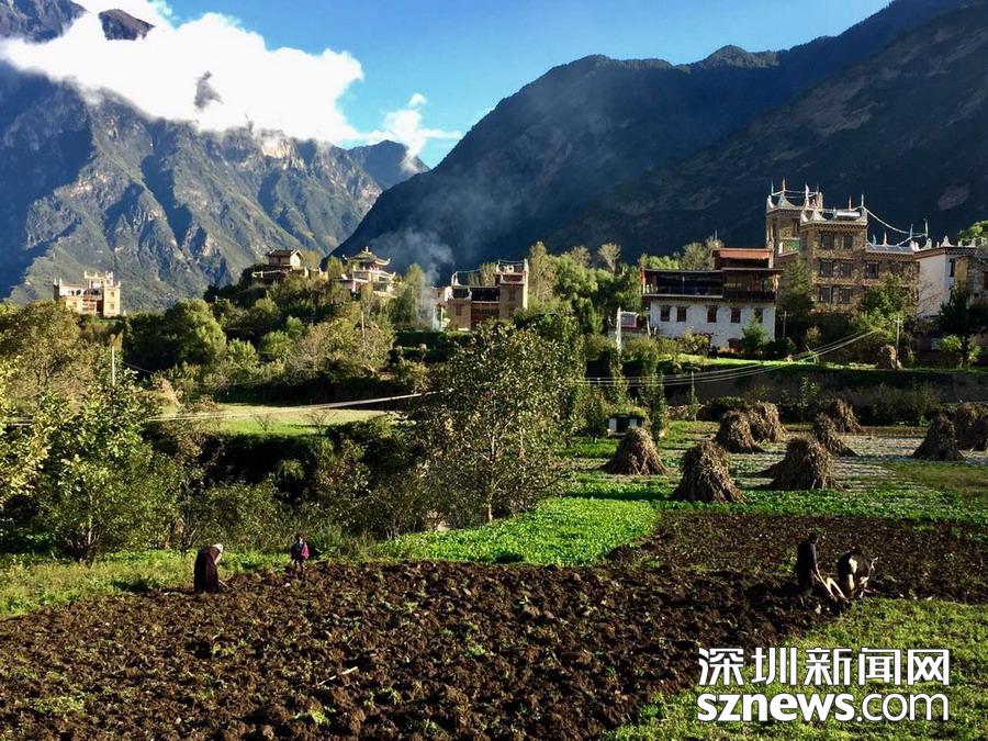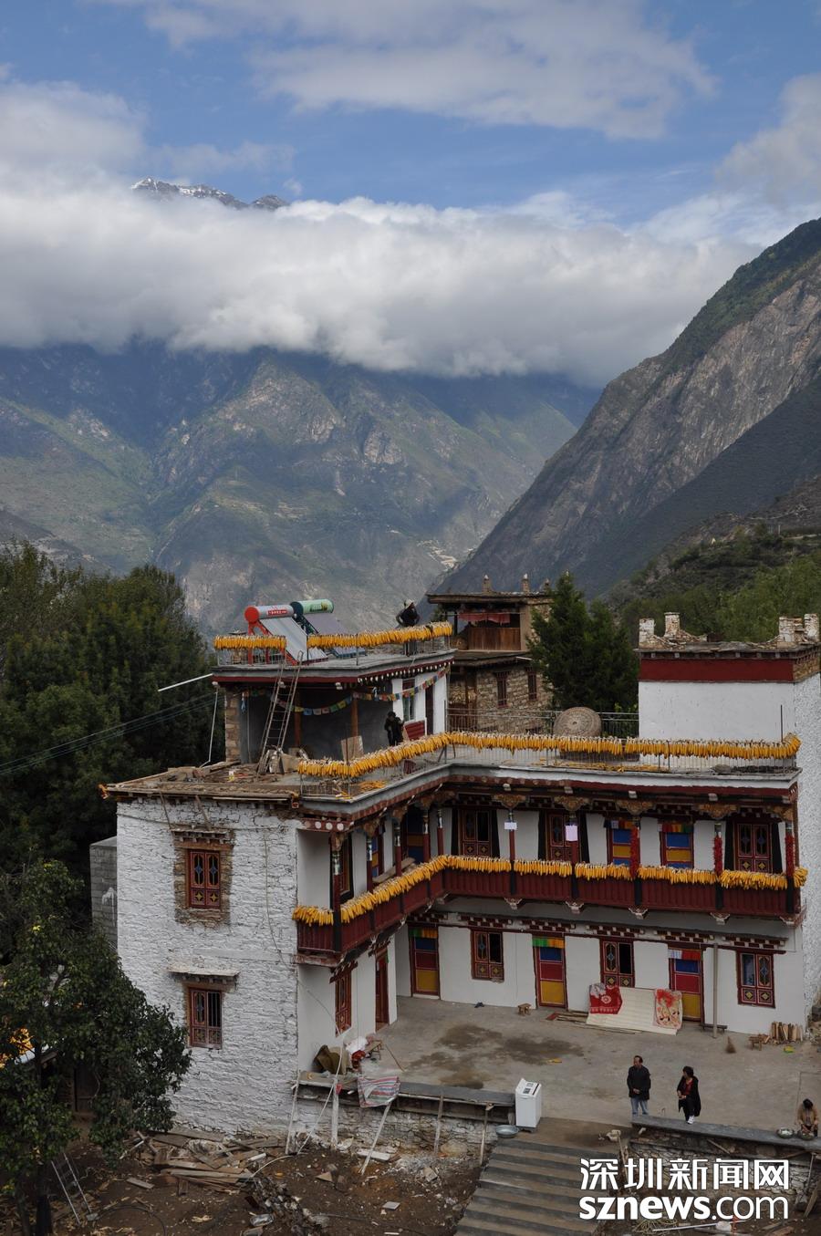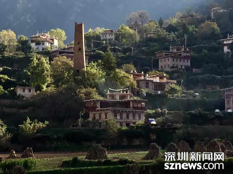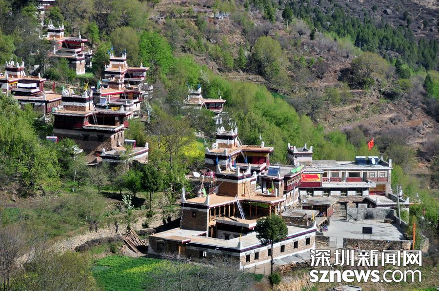 “甲居”,藏語是百戶人家之意。甲居藏寨距丹巴縣城約8公里,從大金川河谷層層向上攀緣,一直伸延到卡帕瑪群峰腳下。在相對高差近千米的山坡上,一幢幢藏式樓房和碉樓灑落在綠樹鮮花叢中,將田園牧歌式的風光展示在人們眼前。李仁奇攝