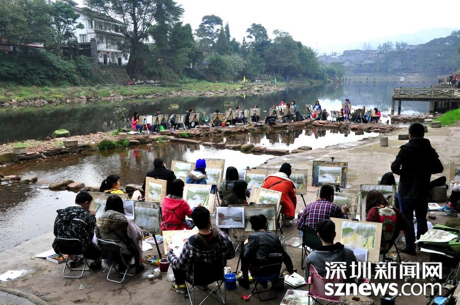 古鎮吸引很多寫生的學生 李 仁奇 攝
