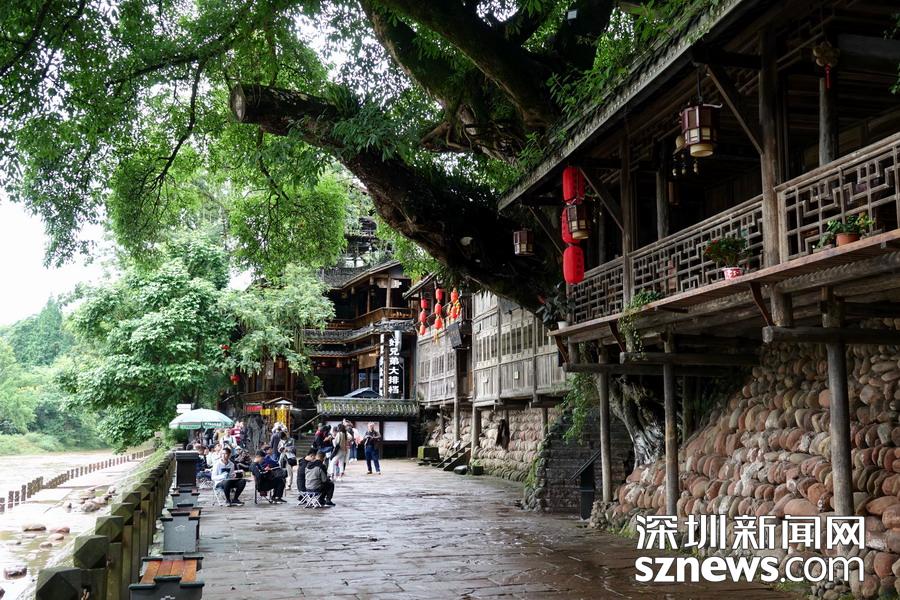 古鎮背靠峨眉、瓦屋仙山,楊村河、花溪河擁鎮而過。這里有川西風情吊腳樓、訪古尋悠水碼頭、親水臨河古棧道、百年民居匯老街等特色景觀。李 仁奇 攝