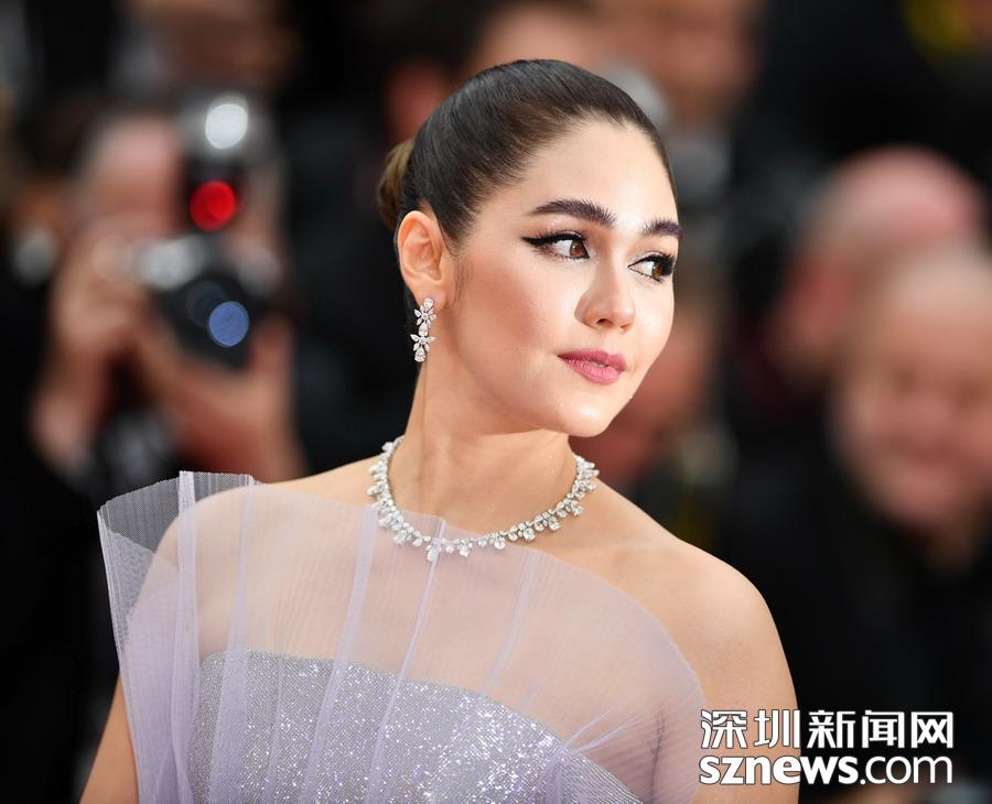 5月14日,在法國南部城市戛納,巴西模特、演員安布羅休亮相開幕式紅毯。 5月14日,第72屆戛納電影節在戛納開幕。本屆電影節將持續至5月25日。 新華社記者 張鋮 攝