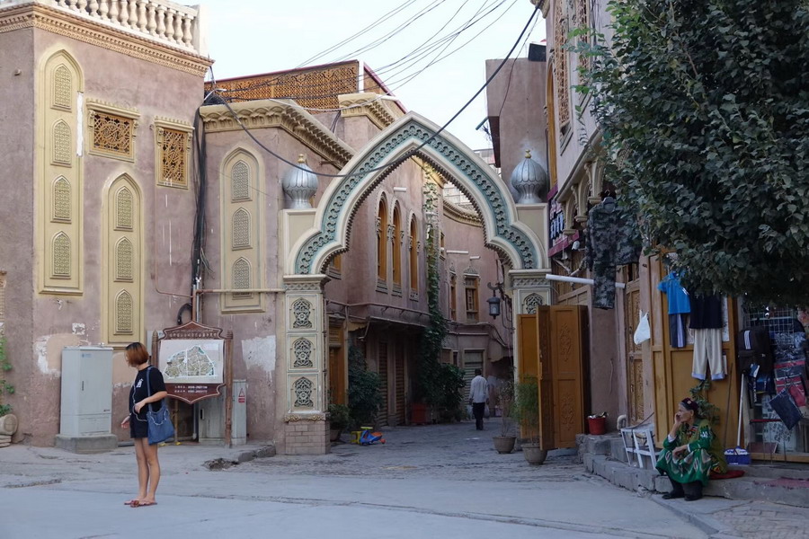 兩千多年前,這里是古疏勒國王宮所在地,從500多年前建立艾提尕爾清真寺起始,吾斯塘博依街逐漸成為一條喧鬧繁華的主街,匯聚了當?shù)刈畛錾哪芄で山常敲逼鋵嵉氖止に嚻芬粭l街。李仁奇 攝