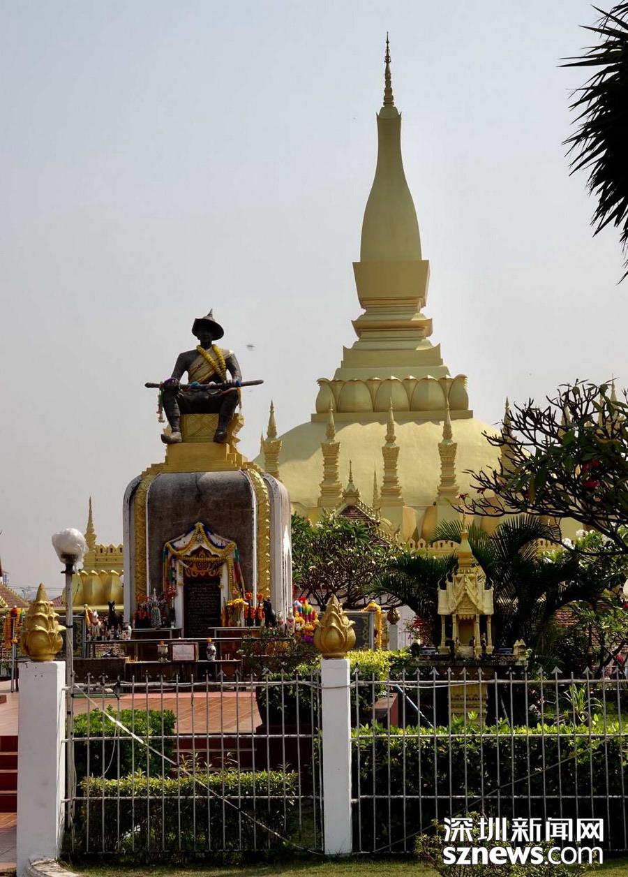 主塔呈方形,灰磚結構,主塔底部由3層巨大的方座構成,塔高45米,寬54米。四周幾十米寬的草地外是方形圍廊。李仁奇 攝