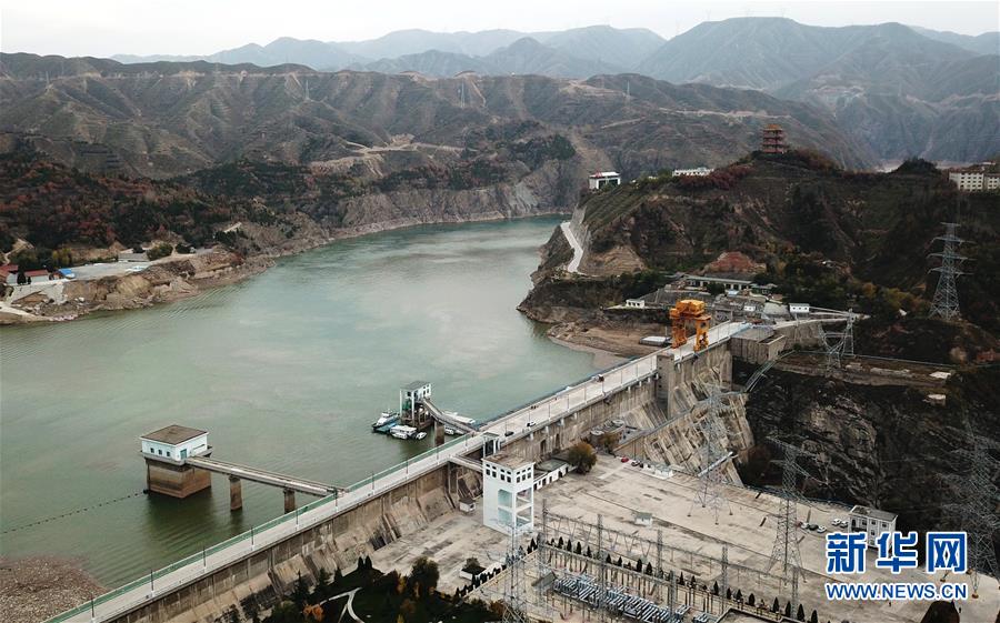 這是10月24日無人機拍攝的劉家峽水庫庫區和水庫大壩。 新華社記者 陳斌 攝
