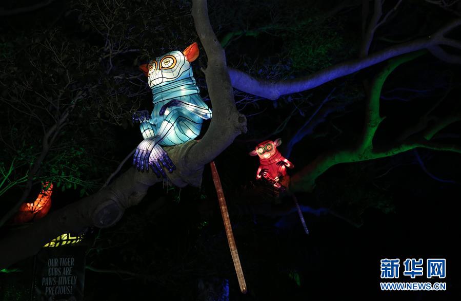 6月8日,在澳大利亞悉尼塔朗加動(dòng)物園,游客參觀動(dòng)物造型花燈。新華社記者 白雪飛 攝