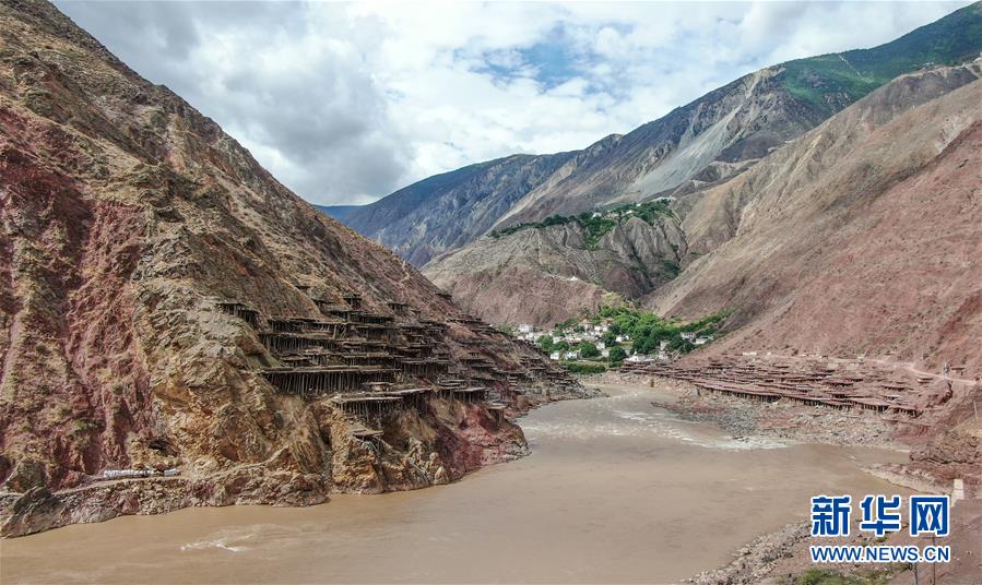 這是位于瀾滄江畔的西藏芒康縣納西民族鄉加達村的鹽田(6月4日無人機拍攝)。新華社記者晉美多吉攝
