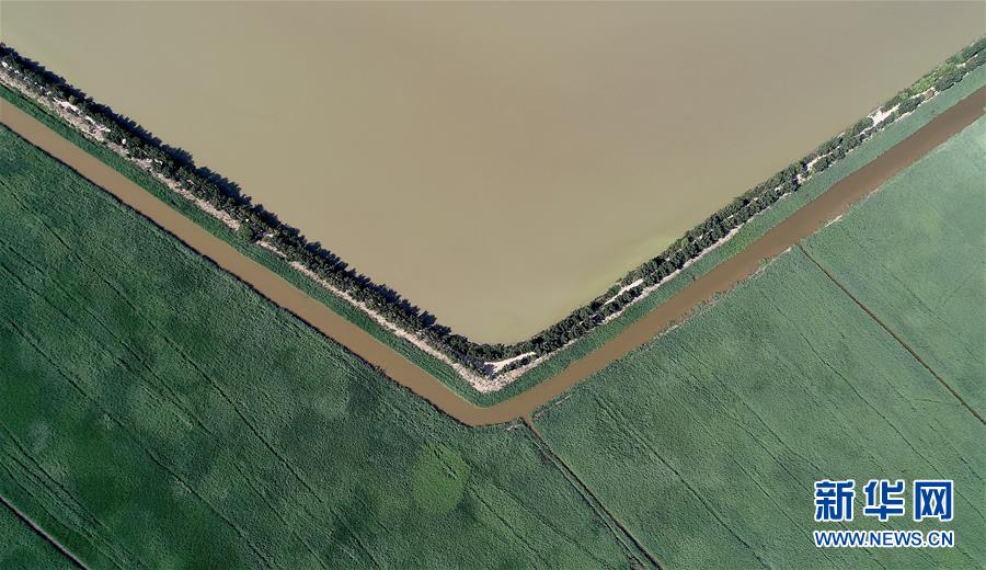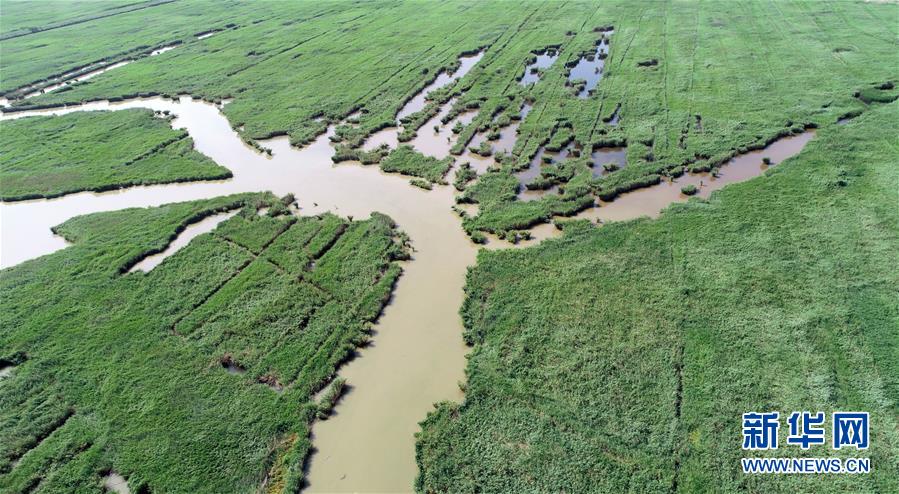 這是天津市寧河區七里海濕地局部景觀(6月22日無人機拍攝)。新華社記者 岳月偉 攝