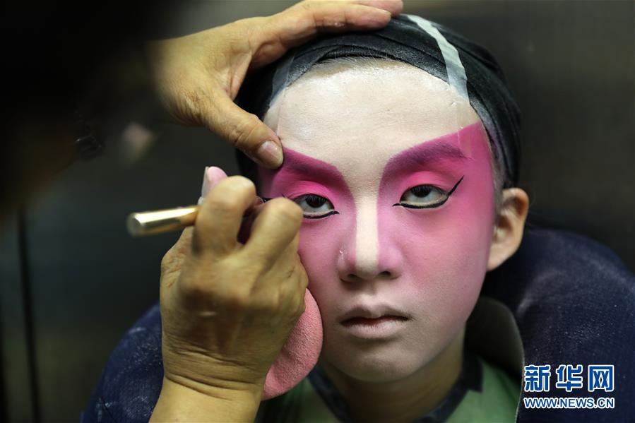 粵劇小演員陸瑞徽在畫經典“紅白臉”妝容(6月8日攝)。 聲輝粵劇推廣協會成立于2003年,是香港重要粵劇藝術團體之一,致力于向青少年推廣粵劇。協會目前有兩個初班,3個中班,一個青少年班。粵劇又稱“廣東大戲”,表演技藝包括“唱做念打”,即唱功、身段、臺詞、武打,主要流行于廣東、廣西和香港、澳門等地區。2009年,粵劇被列入聯合國教科文組織人類非物質文化遺產代表作名錄,今年正逢十周年。 新華社記者 吳曉初 攝