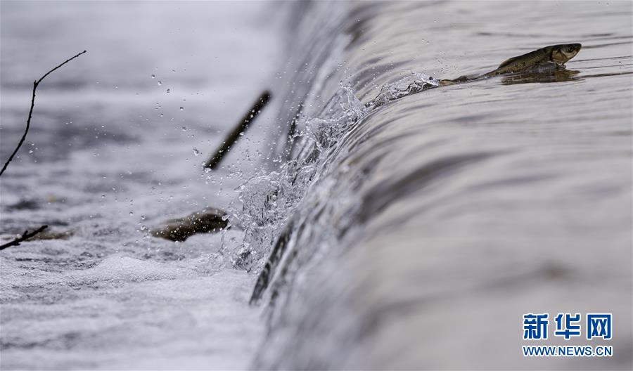 7月6日,在青海省剛察縣沙柳河里,一只湟魚向上洄游。 新華社記者 吳剛攝