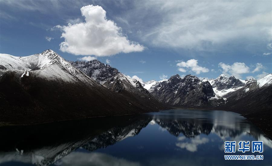 在年保玉則,雪山與湖泊相映成畫(5月21日無人機拍攝)。新華社記者 張宏祥 攝