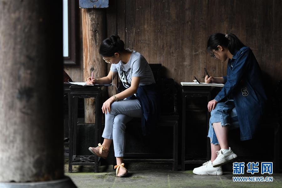 4月24日,繪畫愛好者在西遞風景區寫生。近日,隨著氣溫升高,位于安徽省黟縣的古村落西遞和宏村春意盎然,景色如畫。大批繪畫愛好者前來寫生,用畫筆描繪古村春色。 新華社記者 張端 攝