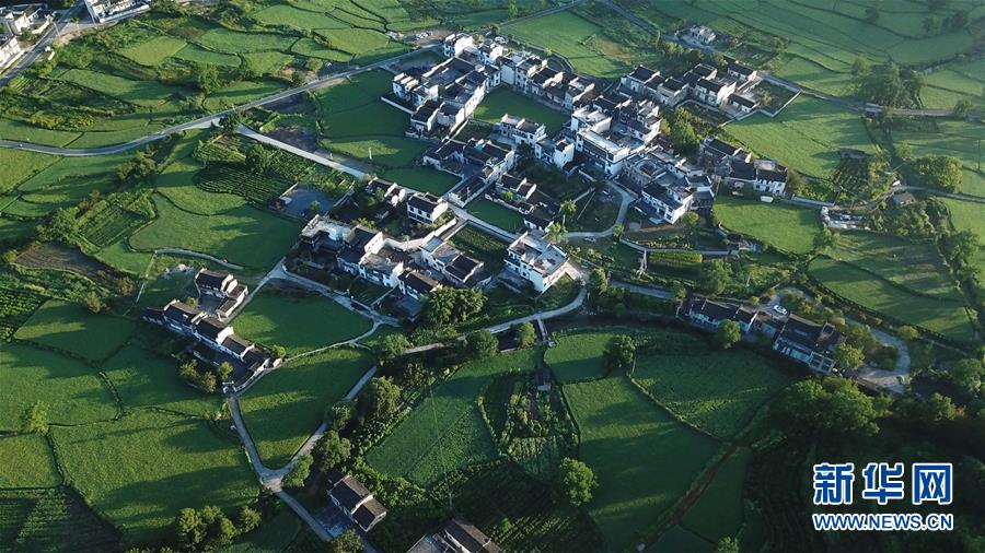 這是8月4日無人機拍攝的安徽黟縣宏村風景區附近的村莊。新華社記者 張端 攝